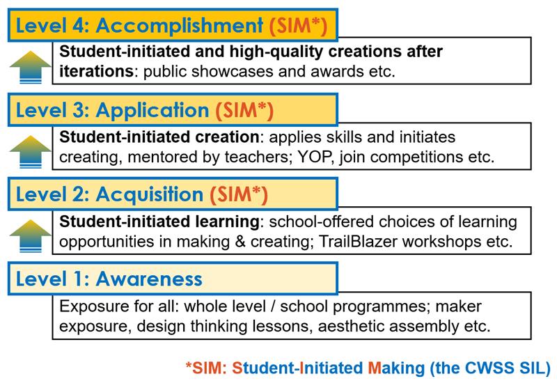 Through TrailBlazer Programme, all students can be recognized for the values of adventurousness and enterprise they demonstrate. Their creations will be celebrated, they can build their creativity portfolio, and they will also have the opportunity to participate in various exhibitions and competitions. They are recognised in Trailblazer attainment levels: